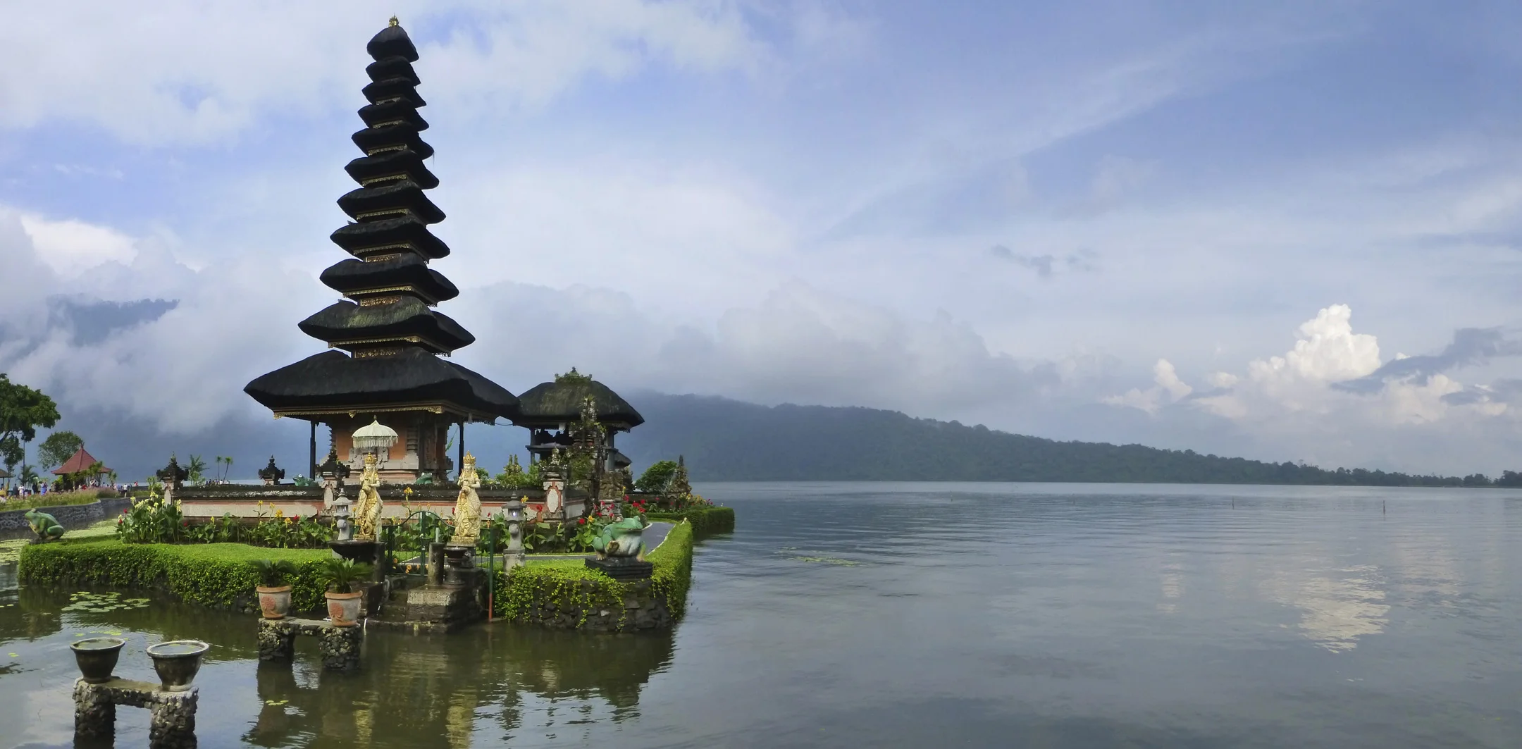 We thanked Ayu for her hospitality and said our goodbyes before the cremation was over. Made was going to take us on a final inland tour of Bali before going to the coast for a couple of days. We were starting to feel the fatigue of sickness take hold, so Made took us to a restaurant in the hills for lunch. We stepped in just before torrential rains started pounding the ground. Thunder made the building shake while we ate fresh vegetable soup, which was like drinking liquid heaven on our sore throats. The sickness was slowly permeating our bodies, and we knew there was only so much time left before we’d lose all our energy, so we hit the road quickly and traveled to the Pura Bratan temple. The rain had let up by the time we arrived. As a result, the lakeside water temple was framed by mist-shrouded mountains and cool fresh air filled our lungs. Admittedly, the location was teeming with tourists, which fractured the serenity a bit, but it still was a gorgeous place to behold.