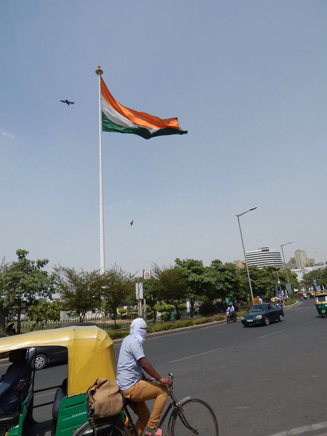 We got off the train in a posher part of town: Connaught Place. It’s a shopping area of concentric circles filled with storefronts and a park set in the middle. In the center of the park waved a colossal Indian flag. British architects constructed Connaught Place in the first half of the 20th century and it resides in the wealthier part of Delhi. It was definitely more modern than what we’d seen thus far but I can’t say it was flashy or exceptionally clean. The vibe was more outdoor mall than Rodeo Drive. According to Aura, real estate here was more expensive than Manhattan at one point!
